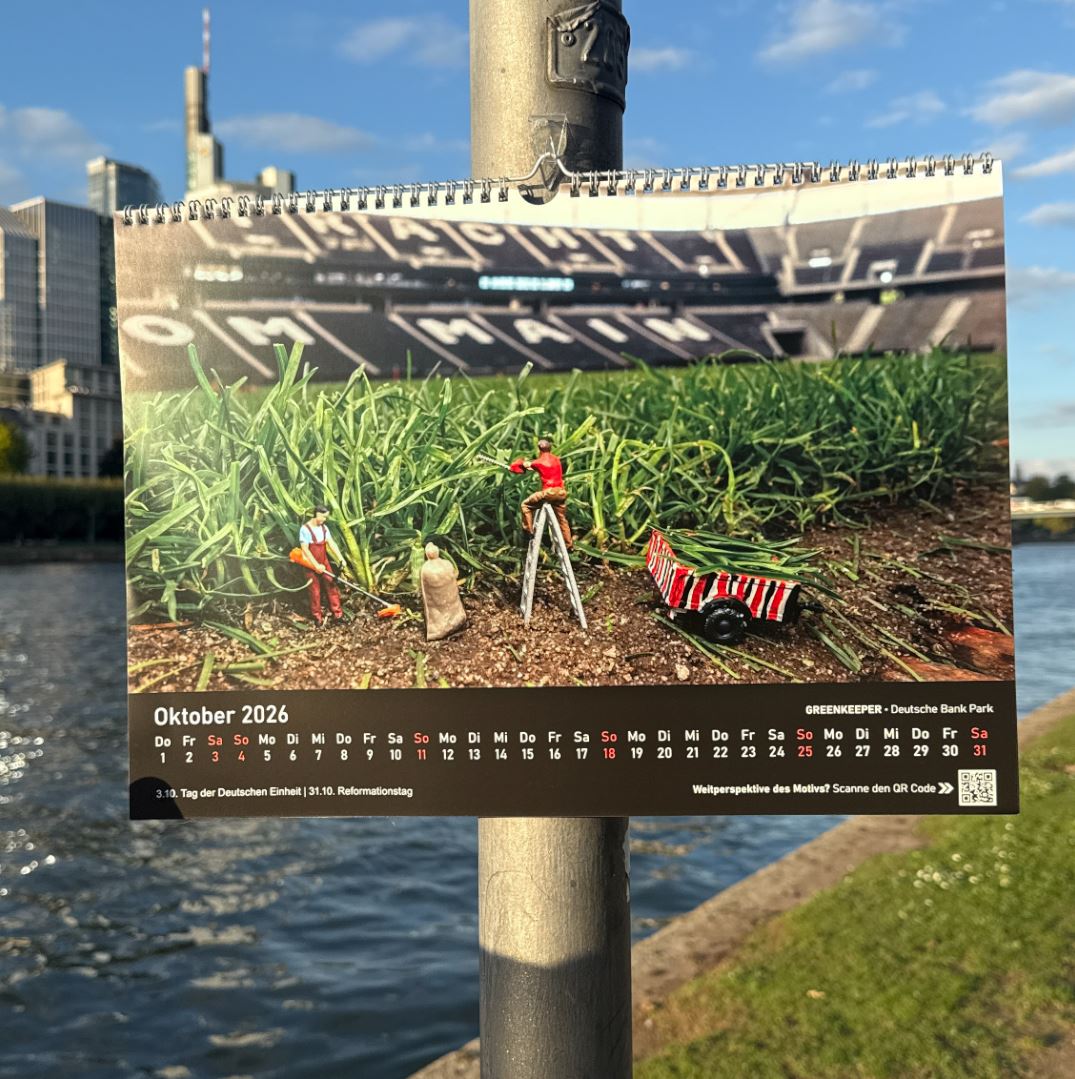 Entdecke Frankfurt im Jahr 2026 aus einer völlig neuen Perspektive! Mit dem Little Frankfurt Kalender 2026 entführt dich der Fotokünstler Benedikt Hild in seine kunstvoll inszenierten Miniaturszenen.