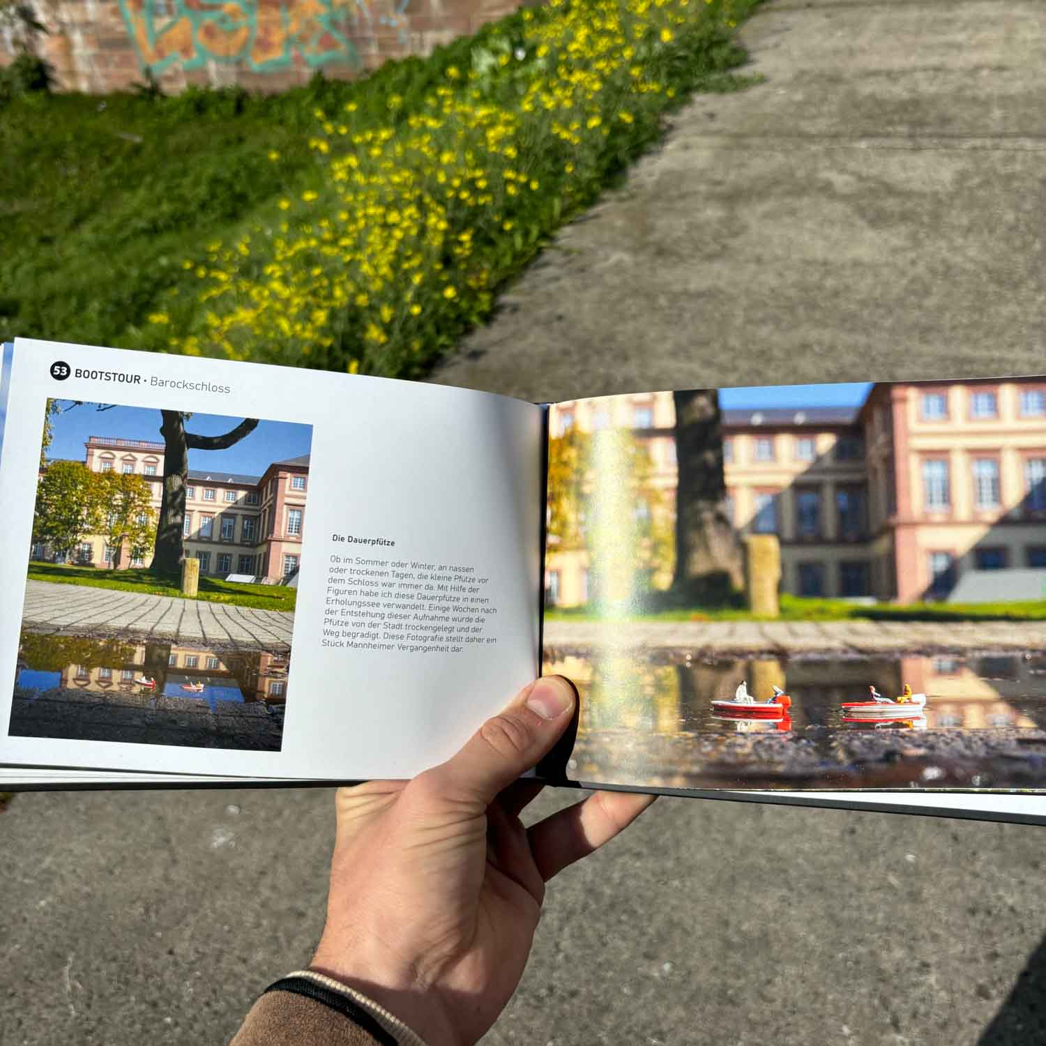 In einer Pfütze vor dem Mannheimer Schloss stechen zwei Boote in See. Zeitgleich erforschen drei Taucher den Brunnen vor dem Wasserturm und sind dort dem plötzlichen Angriff einer Ente ausgesetzt. Tauche ein in die Welt der Winzlinge und entdecke das spannende Stadtleben aus neuen Blickwinkeln.