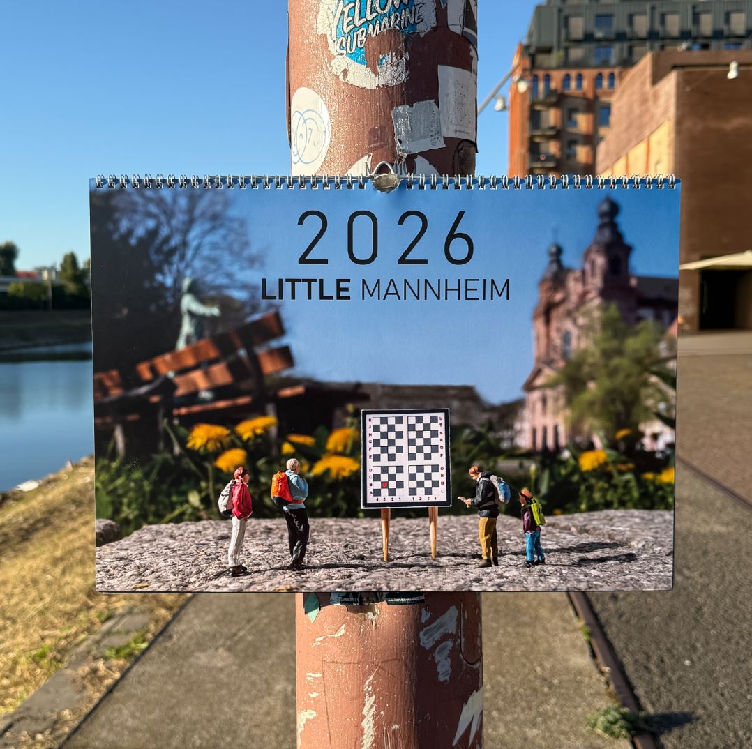Entdecke Mannheim aus einer völlig neuen Perspektive mit dem Little Mannheim Kalender 2026! Der Fotokünstler Benedikt Hild hat es sich zur Aufgabe gemacht, die Einzigartigkeit Mannheims in kunstvollen Miniaturszenen festzuhalten.