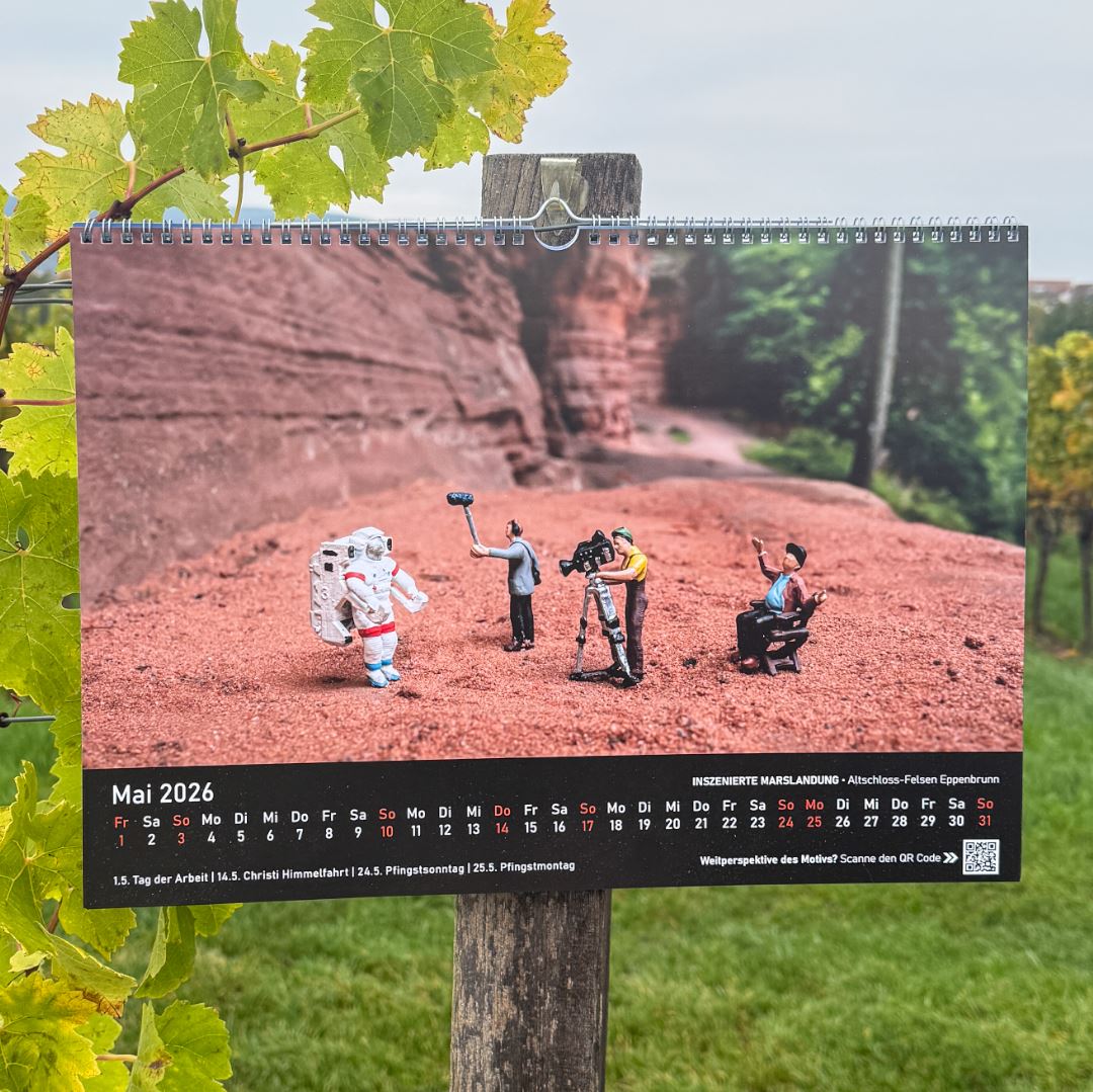 Entdecke die Pfalz aus einer neuen Perspektive mit dem Little Pfalz Kalender 2026! Der Fotokünstler Benedikt Hild entführt dich in eine Welt der Miniaturszenen, die er kunstvoll an besonderen Orten der Pfalz inszeniert und fotografiert hat.